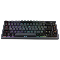 ROG Azoth is a 75% gaming keyboard bristling with DIY features traditionally found on premium custom keyboards. A metal top cover with silicone gasket mount and three-layer dampening, hot-swappable, pre-lubed ROG NX mechanical switches and keyboard stabilizer, ROG PBT doubleshot keycaps and bundled switch lube kit combine to create unprecedented typing experiences. ROG Azoth also has an OLED display with intuitive controls, versatile tri-mode connectivity with SpeedNova wireless technology in 2.4 GHz mode, three adjustable tilt positions, and MacOS support.