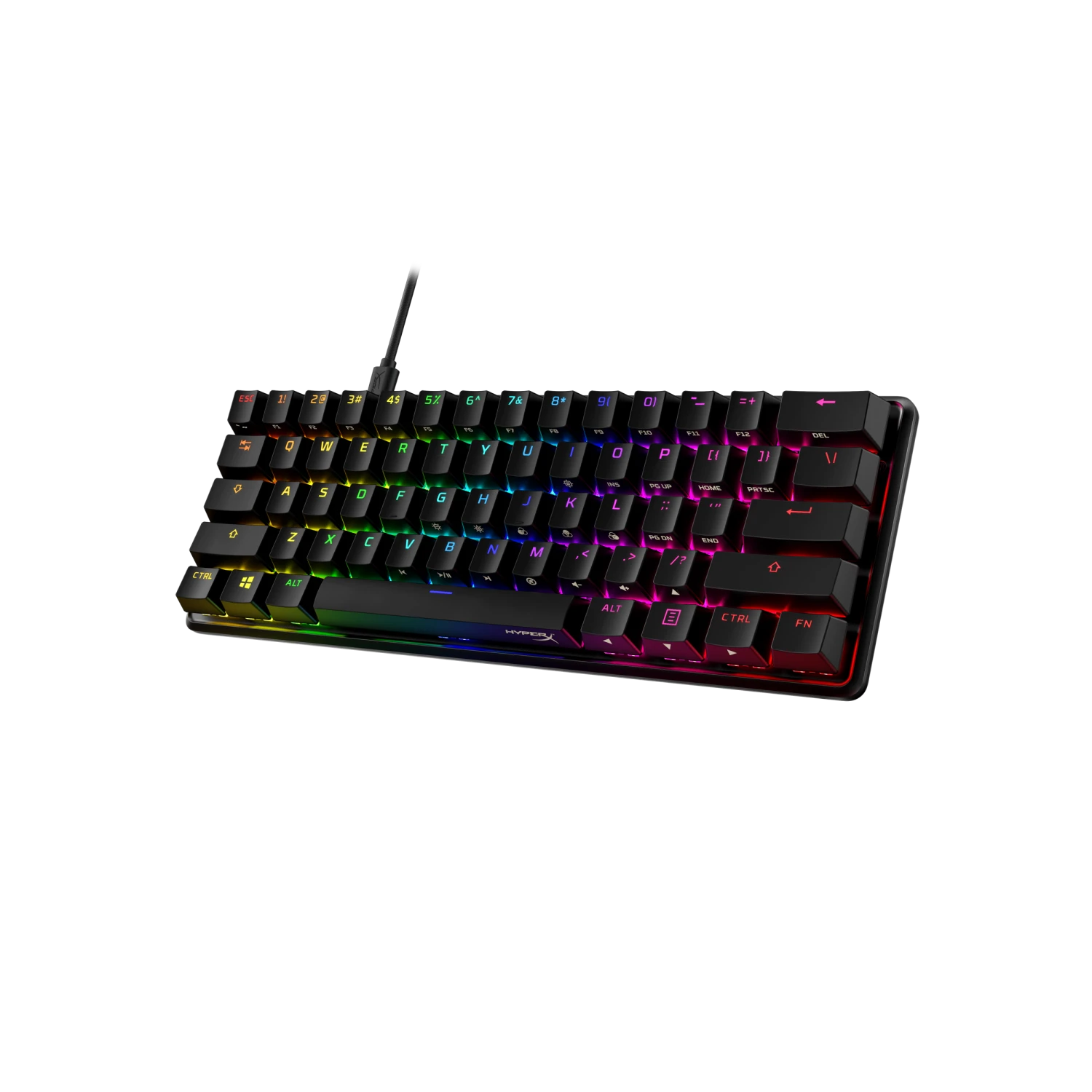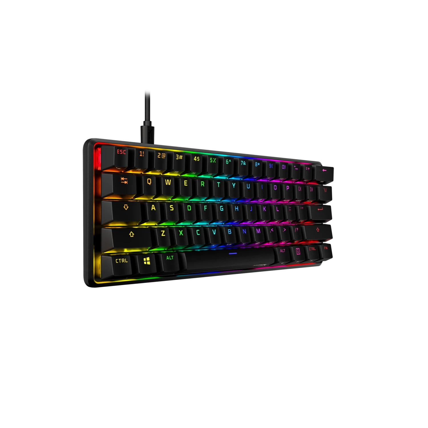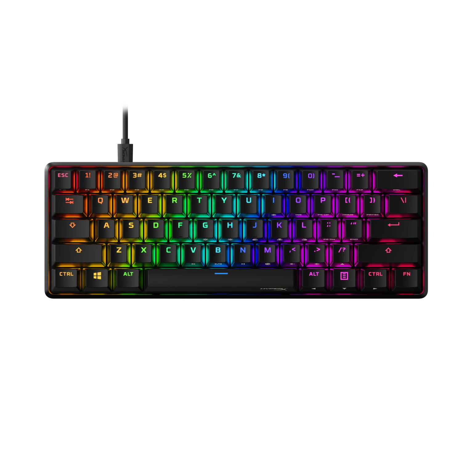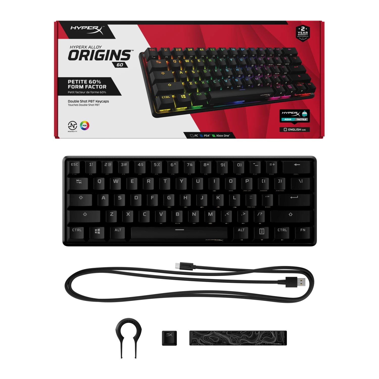 The HyperX Alloy Origins 60 is a supremely portable 60% form factor keyboard that gives you more room for sweeping mouse movements. It features a durable, full aluminum body, and reliable HyperX switches balanced for speed and performance which are rated to withstand 80 million keypresses. The stock double shot PBT keycaps have secondary functions printed on them so you can quickly locate additional functionality. Let your style shine bright with the HyperX switches’ exposed LED design, and stunning lighting effects. Further customize your keyboard with macros, personalized lighting profiles, and more with HyperX NGENUITY software.
