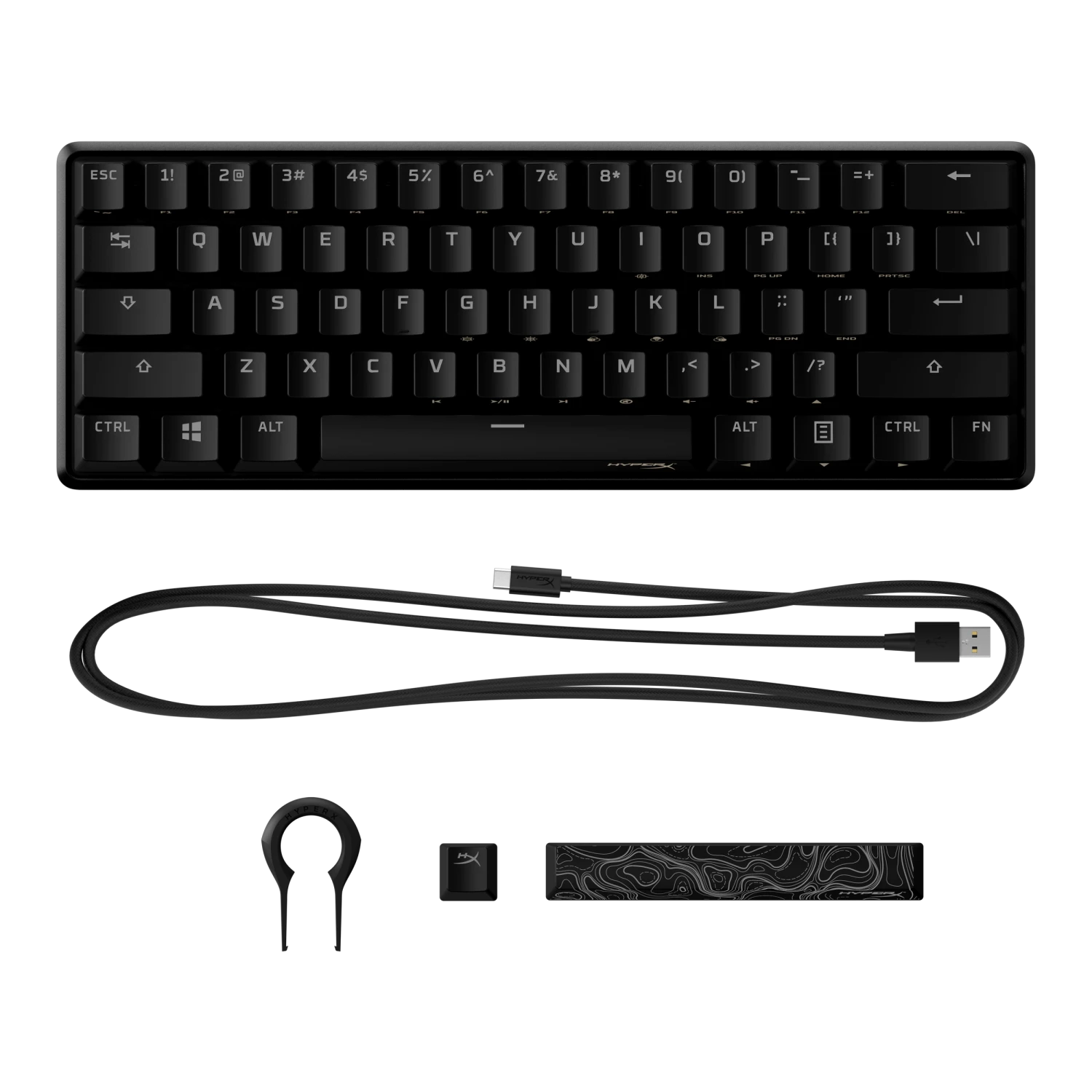 - A keycap puller, an additional Esc key, and the special alternate spacebar design for the Alloy Origins 60 are included for additional customization.